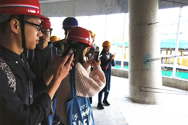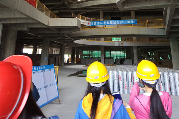 同学们在工程师的细心讲解下,分别参观了工程中的各个环节,对于工程施工有了不少初步的认识,例如在参观到商场中庭的26米的悬挑结构时,学生们对于这一高支模工程就十分感兴趣,纷纷提问,工程师宁工对同学们进行了耐心的讲解。此后,在参观在建的Imax电影院时,同学们也了解了更多平常在课本中看不到的知识。