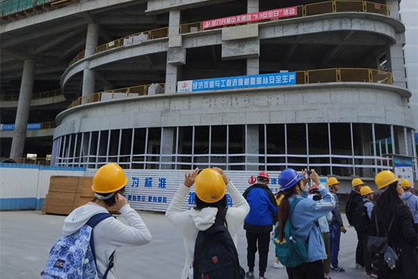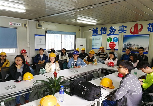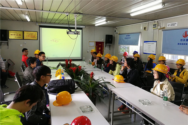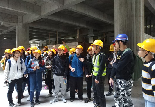 在参观之前,项目负责人在会议室先给师生们介绍了项目的基本情况,包括项目施工的组织策划、施工重点难点等。在了解项目情况后,同学们就跟随工程师到工地现场进行实地参观学习。