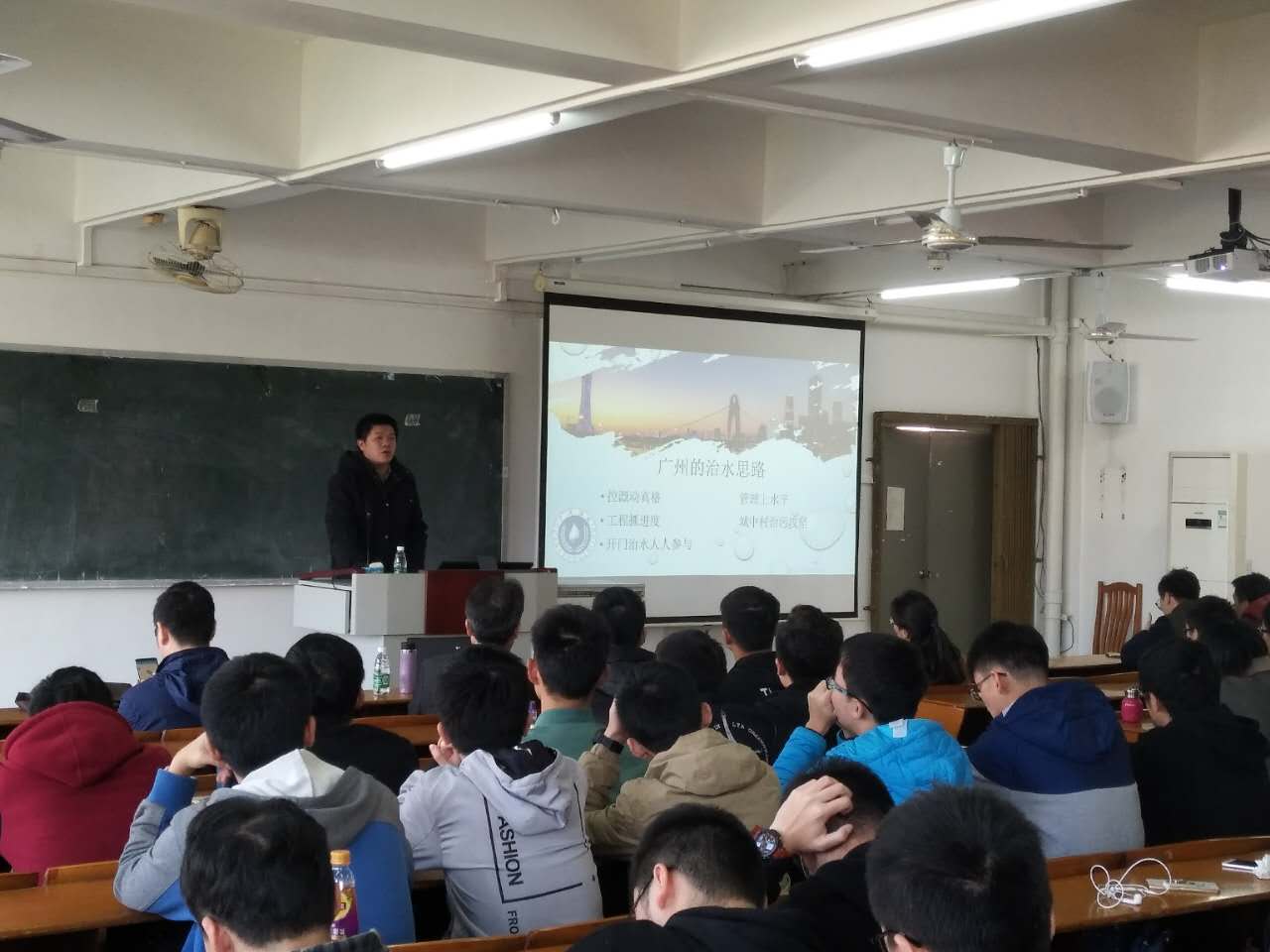 为了提高同学们的专业素养,让同学们深入了解人水和谐的理念并引导同学们树立环保意识、参与意识、监督意识,2017年12月21日,土木与交通学院水利系邀请到了广州大学环境科学与工程学院的常向阳教授和广州市河涌管理中心的李工为大家开展了一次以治理水体和海绵城市与环境教育为主题的讲座,讲座由水利系副主任程香菊老师主持。