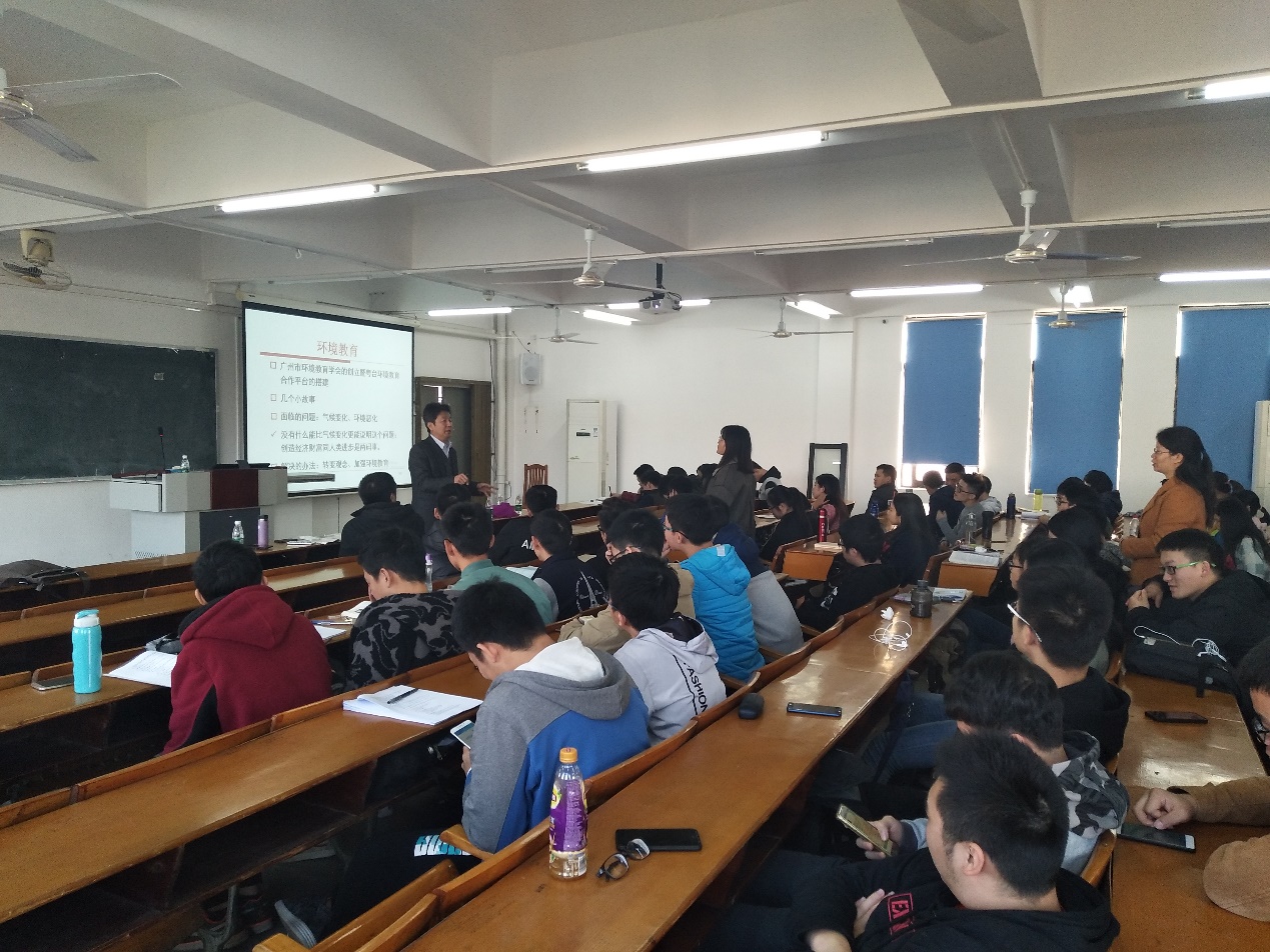 广州大学常向阳教授进行了以海绵城市和环境教育为主题的科普及宣讲,常教授幽默地和大家打了招呼,并鼓励同学敢于质疑、敢于提问、敢于思考。常教授讲解海绵城市过程中,提到了“要跳出水来谈治水的问题”的思路,梳理海绵城市(LID)的源起和我国提出的时代背景,探析雨洪治理、弹性城市、生态城市、低碳城市、低影响开发模式和城市可持续发展等海绵城市的核心理念与科学内涵,以及目前对海绵城市的诸多争议,从技术、经济等多个角度加强同学们对海绵城市建设的认识。在接下来的环境教育中,常教授结合自身经历,通过台湾省与澳大利亚等地区的相关环境教育实例,说明了环境教育的重要性。他提到,台湾的环境教育法成立同样经过了许多波折,但是环境教育是一个非常长期的过程,需要人们从观念上发生改变,成立之后所带来的成效,我们可以拭目以待。到了提问环节,同学们一次次踊跃的提问让常教授赞赏“这是一个好问题”,同时,常教授旁征博引的回答也赢得了同学们的阵阵掌声。