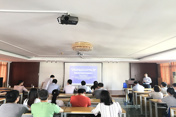 5月21日下午3点,美国内华达大学田宗忠教授在华南理工大学交通大楼604会议室举行交通信号控制主题的学术讲座。