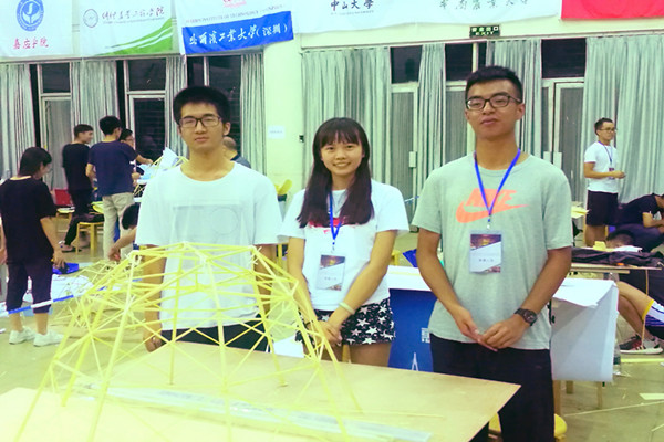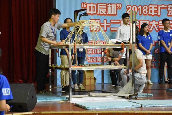 华南理工大学3支代表队由土木与交通学院2016级学生曾衍衍、林增耀、胡弘毅、潘昊瑾、杨益钦、林杨胜、陈观钠、苏辰龙、佘志义在教师指导团队(季静、陈庆军、刘慕广、何文辉、韦峰、王燕林)的悉心指导下,经过共16小时的现场模型制作、加载测试比赛、专家打分和叙述答辩等环节,最终获得2个一等奖、1个二等奖的好成绩。