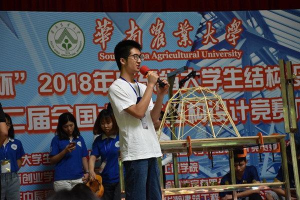 2018年6月3日,为期3天的“中辰杯”2018年广东省大学生结构设计竞赛暨第十二届全国大学生结构设计竞赛广东省选拔赛在华南农业大学圆满结束。本届广东省大学生结构设计竞赛吸引了中山大学、华南理工大学、暨南大学等19所省内高校的40支参赛队伍参加,参赛师生人数达150人。广东省大学生结构设计竞赛委员会秘书长、我院副院长季静教授,全国大学生结构设计竞赛专家评委、我院王湛教授出席了大赛开幕式。