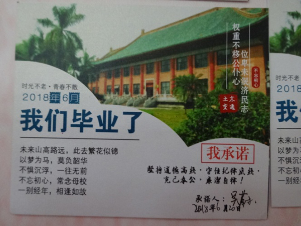 最后全体毕业生党员在廉洁从业承诺卡片上郑重签下了自己的名字,并齐声宣读:我承诺坚持道德高线,守住纪律底线,克己奉公,廉洁自律!(图文/苏图土木与交通学院)