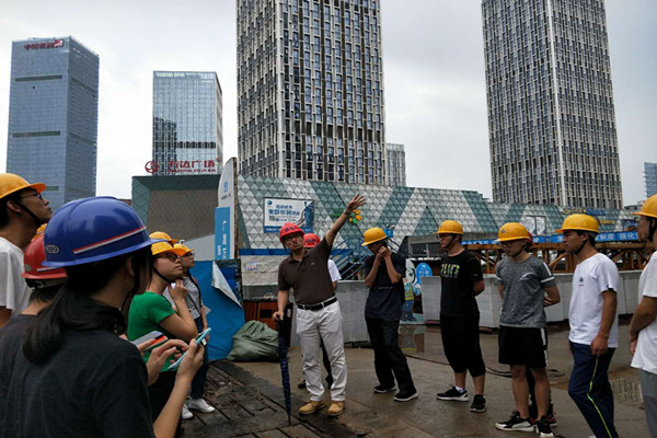 广晟万博城负责人向学生讲解工程概况和技术要点