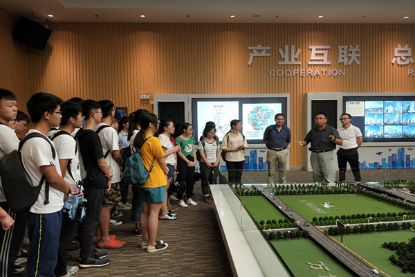 首先,大家来到了万博商务区项目指挥部,在1:160比例的万博商务区沙盘前,陈以力总工给同学们介绍了万博商务区的项目概况,包括这个总项目的建设规划特点、占地面积、主要功能、九大核心项目以及一些较为领先的建设理念,让同学们受益匪浅。过程中,同学们初次了解到了工程投资、规划和建设过程中的实际问题。陈总工的讲解丰富了大家专业学习的经验,拓宽了同学们的专业视野,同学们纷纷感叹,原来在实际工程中,会遇到这么多技术和管理问题,更加强了对自己专业学习的兴趣。