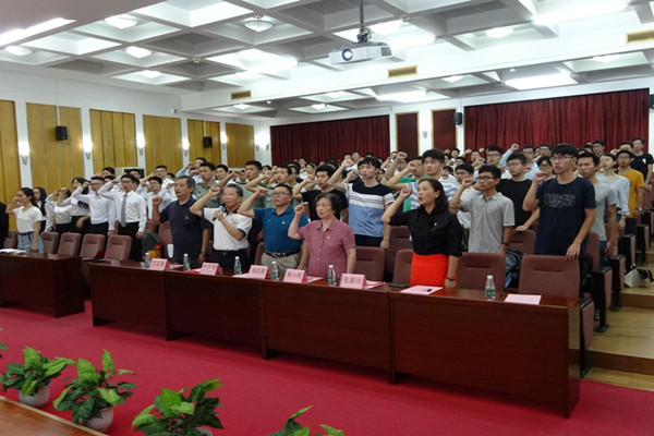 佩戴党徽结束之后,叶老师带领新发展党员宣誓。希望新党员牢记使命,不忘誓词,为共产主义事业奋斗终身。其他在场党员一同重温誓词。