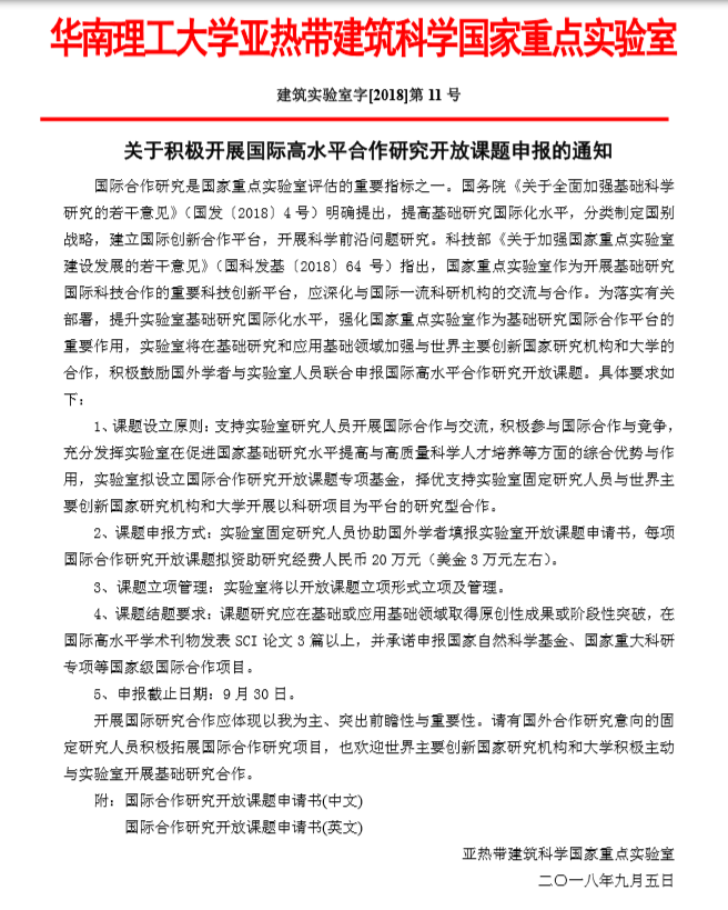 关于积极开展国际高水平合作研究开放课题申报的通知