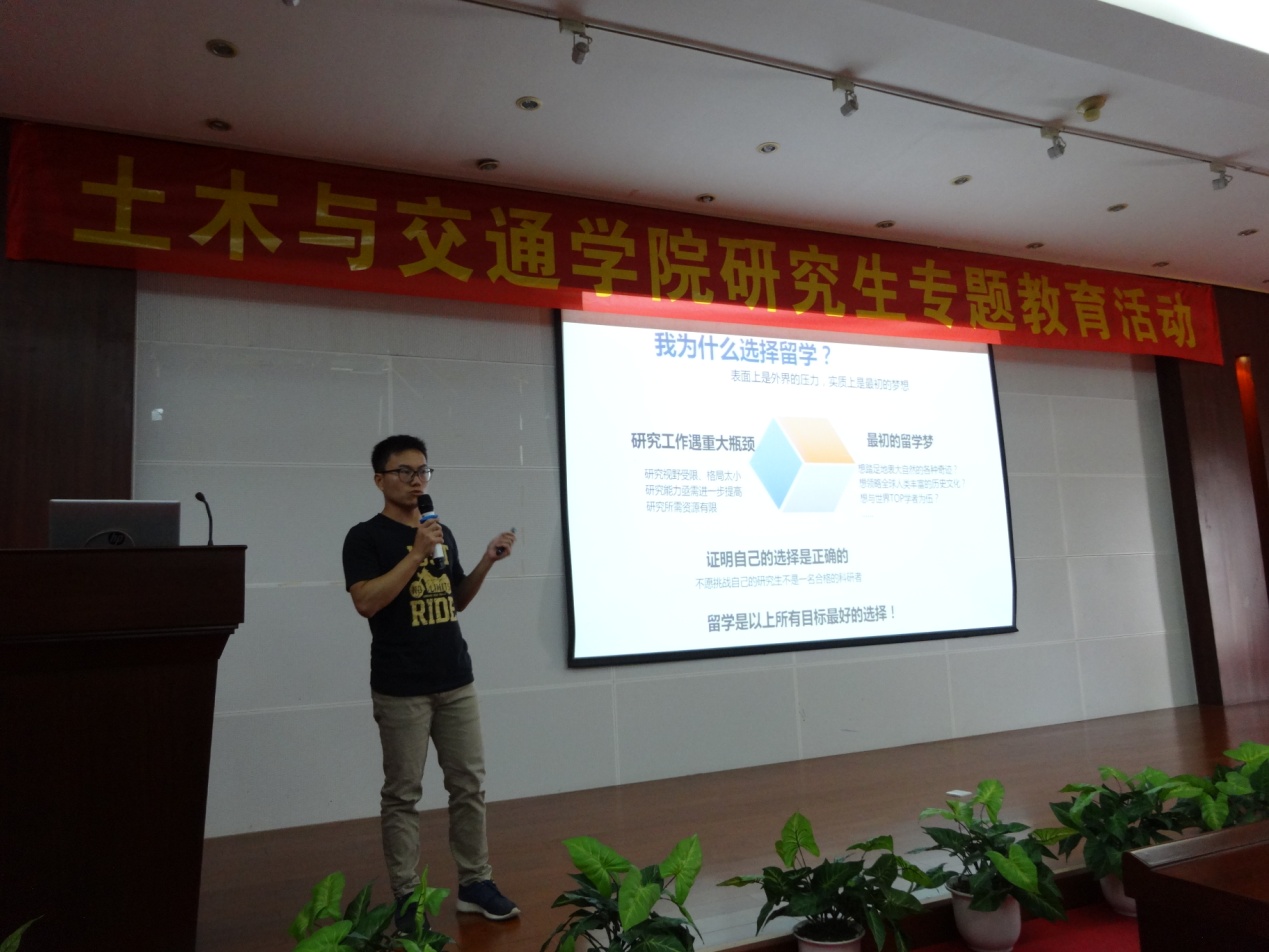 9月28日上午,学院举行了第二场研究生专题教育活动,邀请了我院青年教师赖成光老师、赵仕威博士、李旺辉博士分享了SCI论文撰写与投稿、申请出国留学的技巧和经验。