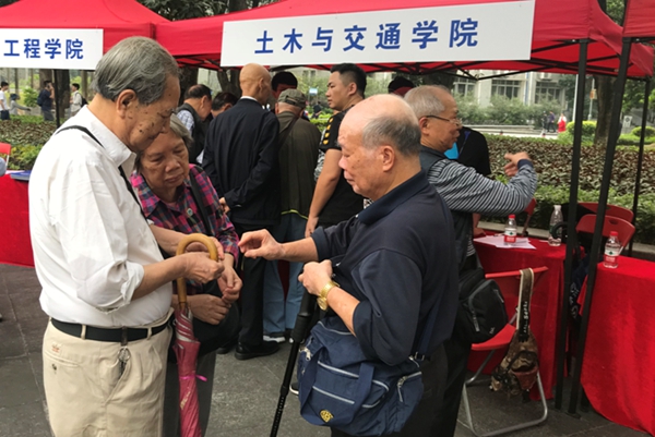 遇见多年未见的老同学,遇见已经退休的老师,再相遇,有着说不完的话、道不完的情。在中山像前拍下一张张的合影,佩戴上精致的校徽,心中充斥着的是满满的激动与幸福。老校友和老教授们是华工变化的见证者,也是中国发展和时代变化的经历者,他们也对我们寄予了希望,勉励我们勇敢前行,为华工和国家的未来担起重任。