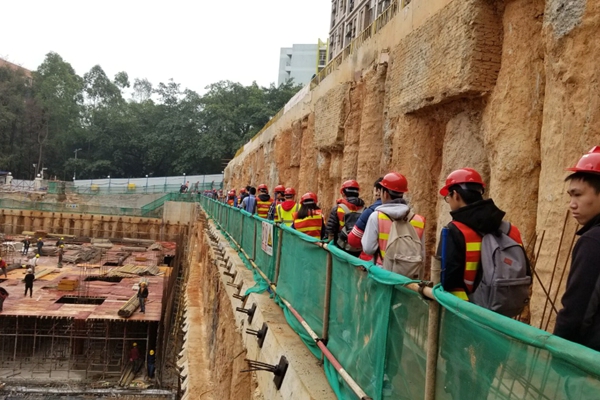 在实习的最后一天,安排的是施工方面认识实习。位于本校的北区北湖南路西南侧地段在建的学生宿舍工地。同学们近距离地观察到一栋建筑的地基施工过程。而且这个时间选取的恰到好处,是现场我们能观察到地基及基层建造的几个阶段,桩基、基坑、楼层逐渐演变的过程一目了然。