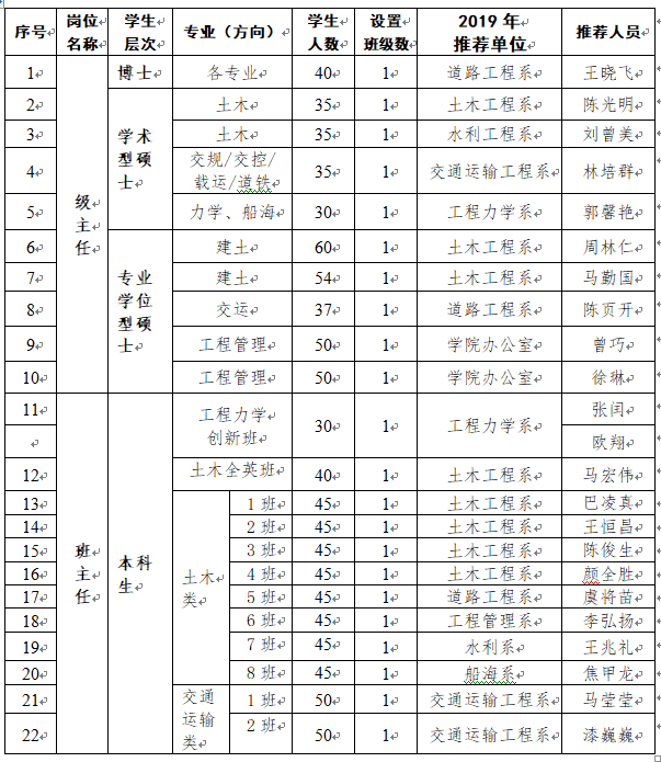 希望以上教师认真工作,认真履行级主任、班主任工作职责,按时完成相关工作任务,努力为学生的成长成才全面发展服务。级主任任期三年;班主任任期四年。2019级本科生在广州国际校区过渡壹年。