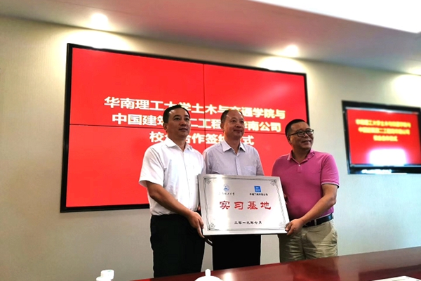 7月15日下午,华南理工大学土木与交通学院在深圳中建二局华南公司总部诚信厅隆重举行与中建二局华南公司产学研合作协议签字仪式。土木与交通学院党委郑存辉书记、院长助理吴建营教授、凌育洪教授、9名全英班本科生,中建二局总经理助理、人力资源部经理裴宏森,中建二局华南公司党委书记王永好董事长、党委副书记张春轩总经理、常俊国副总经理、刘培总工程师、薛国著总经济师等30余人共同出席了签约授牌仪式。