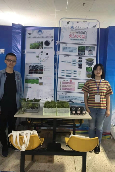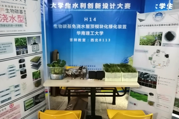 华南理工大学代表队参赛作品为“水葫芦生物碳基免浇水屋顶绿化模块”,具备“水葫芦生物碳”、“免浇水”与“模块化”三个创新与特色,能够有效控制城市面源污染,减缓城市内涝,节水节电,降低建筑物室内温度、延长屋顶寿命,缓解全球变暖,符合“海绵城市”相关理念与原则,同时安装简易,成本较低,具有广阔的市场前景。