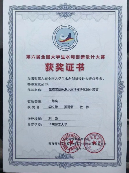 2019年7月13日至17日,第六届全国水利创新设计大赛在昆明理工大学举行。来自全国各地的90多所高校,共计240支队伍参加此次比赛,涵盖了开设水利工程专业的各个院校,包括清华大学、河海大学、武汉大学、天津大学、大连理工大学等所有水利强校。以利锋教授为指导老师、杜伟、李文希、黄菁菲三位本科生为队员的华南理工大学代表队在激烈的角逐中,取得二等奖的优秀成绩。