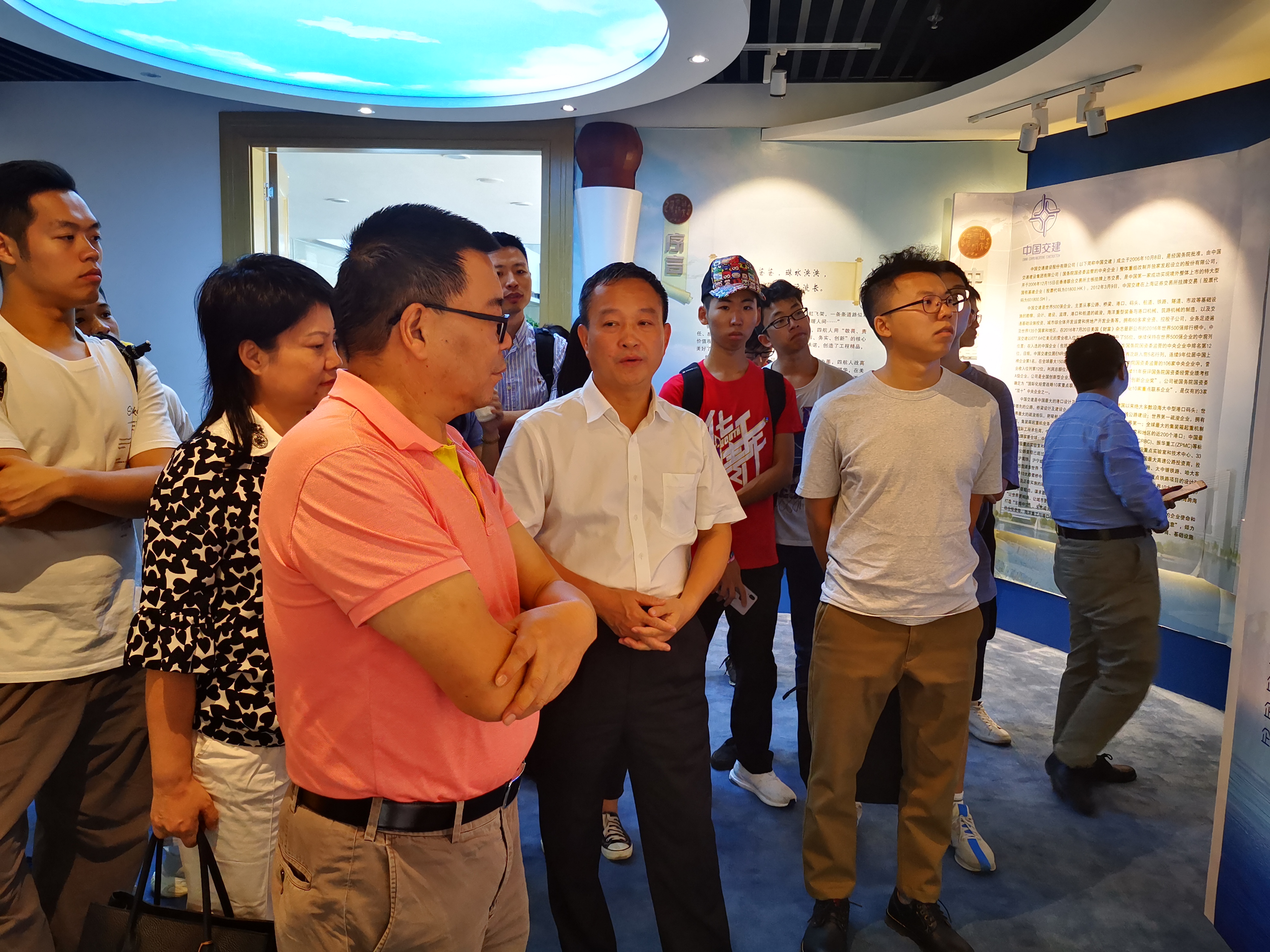 “0、0、1”三座别有特色的超高层写字楼拔地而起,宽敞明亮、舒适、规范的办公空间,午休折叠床、母婴室等人性化温馨关怀,这些给师生们留下深刻印象;在企业文化展厅,有以时间轴线串起的企业发展史,向我们展示了68年来四航局与祖国共命运、与时代齐进步,敢为人先,创新发展,大胆地走出去,开创多个“第一”的悠久历史;有以业务版块组合的企业全面布局,各个业务版块齐头并进共同支撑四航局壮阔历史;有硕果累累的各类获奖荣誉奖牌,展示了中交四航局如何地攻坚克难,努力拼搏,获得一项又一项的国家最高级别的荣誉奖,展示了四航局深厚的文化沉淀和辉煌业绩。