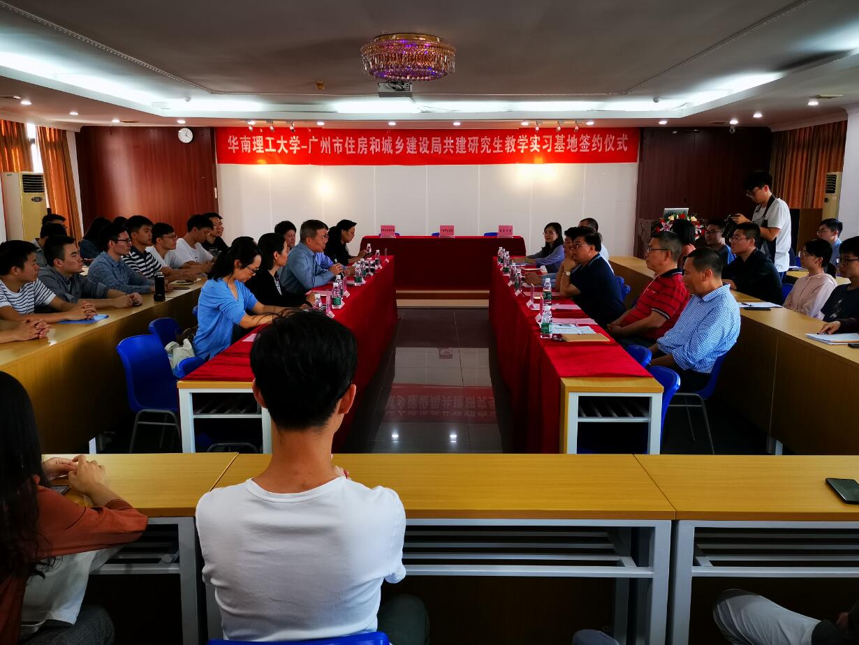 11月11日下午,华南理工大学-广州市住房和城乡建设局共建研究生教学实习基地签约仪式在学校交通大楼604报告厅举行。广州市住房和城乡建设局党组成员、李朝晖副局长率相关处室、下属单位负责人一行,华南理工大学校长助理苏成,土木与交通学院党委郑存辉书记、吴波院长、温惠英副院长、陈珺副院长和建筑学院党委陈莹副书记等一行和来自土木与交通学院、建筑学院硕士生、博士生60余人参加了仪式。仪式由土木与交通学院温惠英副院长主持。