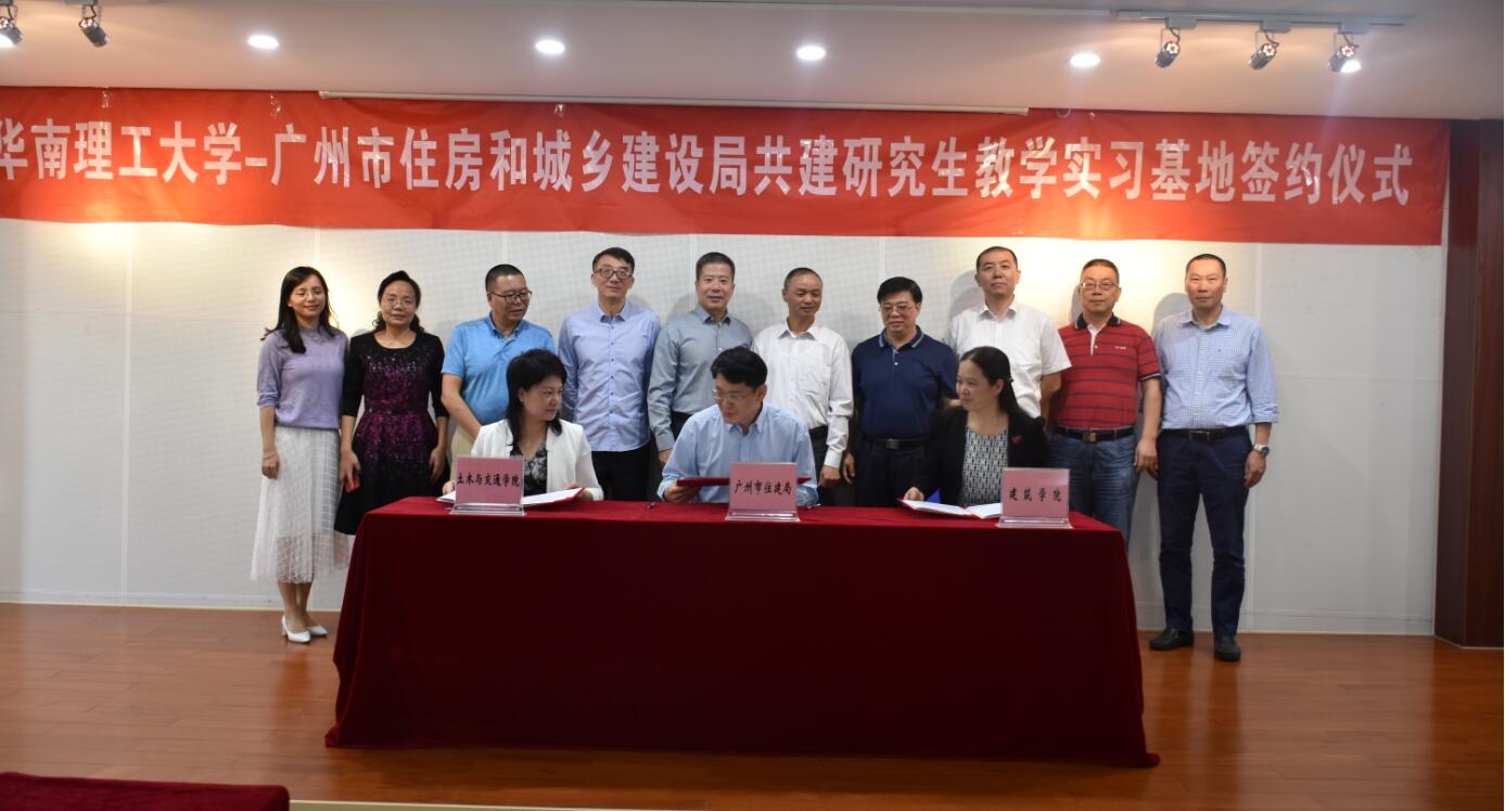 来自土木与交通学院、建筑学院的负责人分别和广州市住建局负责人签署研究生教学实习基地共建协议。