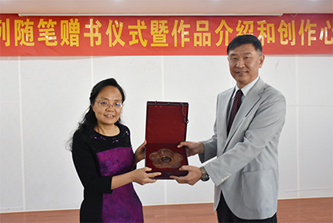 随后,乔丽副馆长代表华南理工大学图书馆回赠了“图书捐赠纪念册”、温惠英副院长代表土木与交通学院回赠了“华南理工大学纪念铜盘”。
