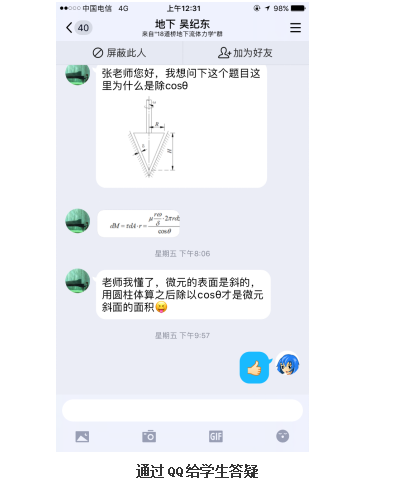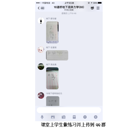 课后:每5-6个同学组成学习小组,由小组长督促上课和学习。每周日晚增设一堂测验课(或习题课、讨论课),或讲评作业、讲解习题、分析典型问题,或通过测验充分了解学生对所学知识的掌握程度,让学生有紧张感,更好地主动学习。利用QQ群里进行答疑、研讨。每周提交一次作业,作业没有减量,难度也没有降低。作业发布在QQ群里,要求学生书面完成后,用手机拍照编辑成文件发给小组长,由课代表汇总后发给老师批改,手写版作业留底返校再提交。