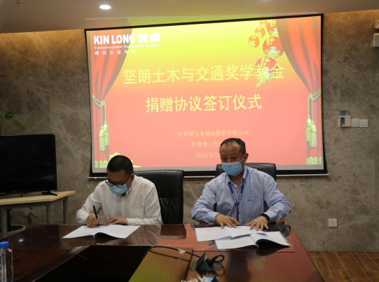 土木与交通学院与广东坚朗五金制品股份有限公司签订“坚朗土木与交通奖学教金”