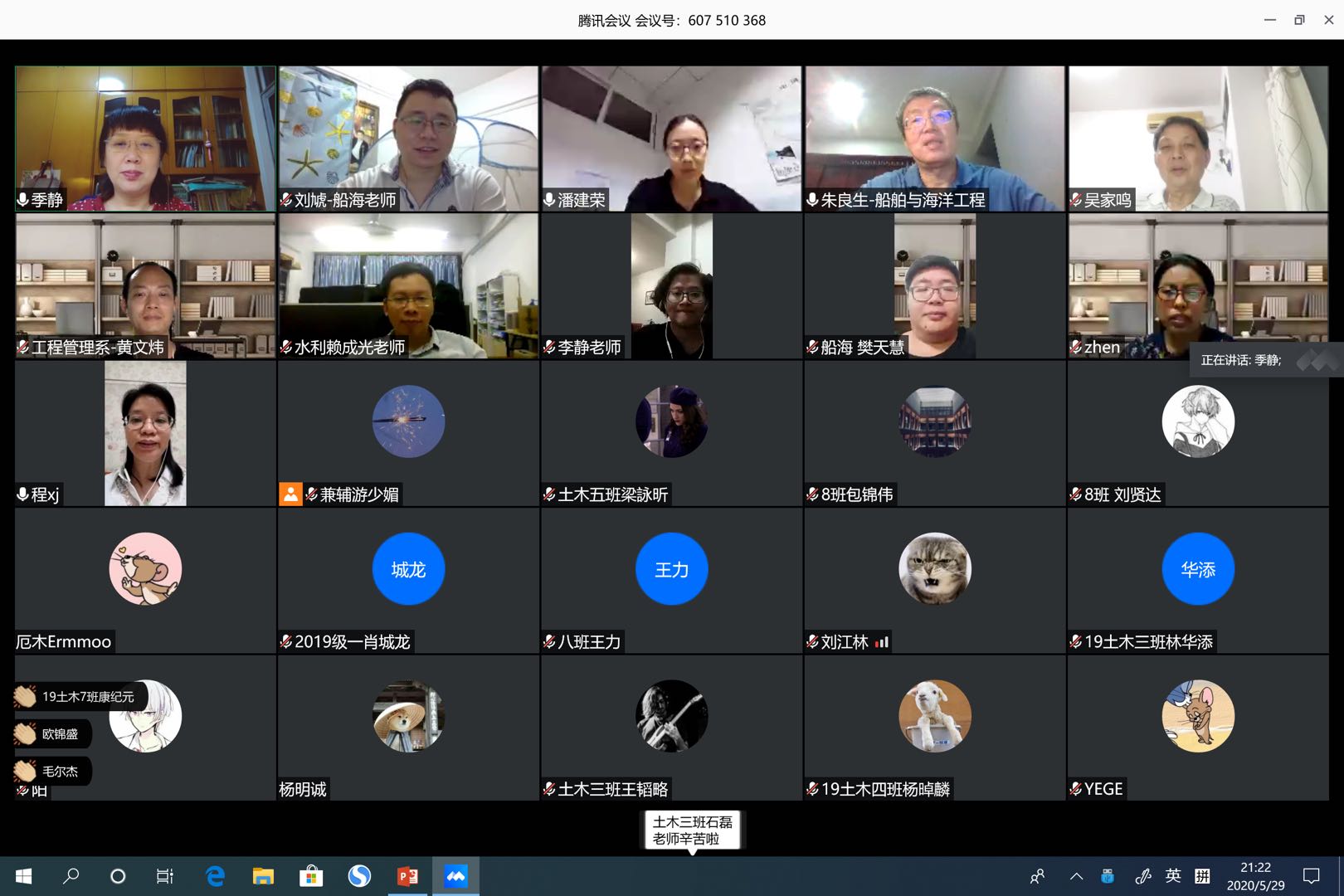 5月29日晚19:30,土木与交通学院2019级土木类及交通运输类本科生通过腾讯会议同时举办线上专业分流答疑会。季静副院长主持会议,朱良生、樊天慧、刘虓、马莹莹、曾强等十六位专业老师,以及郭瑞玉、黎艳红两位辅导员出席专业分流答疑会,土木类、交通运输类同学及家长共300多名参与答疑会。