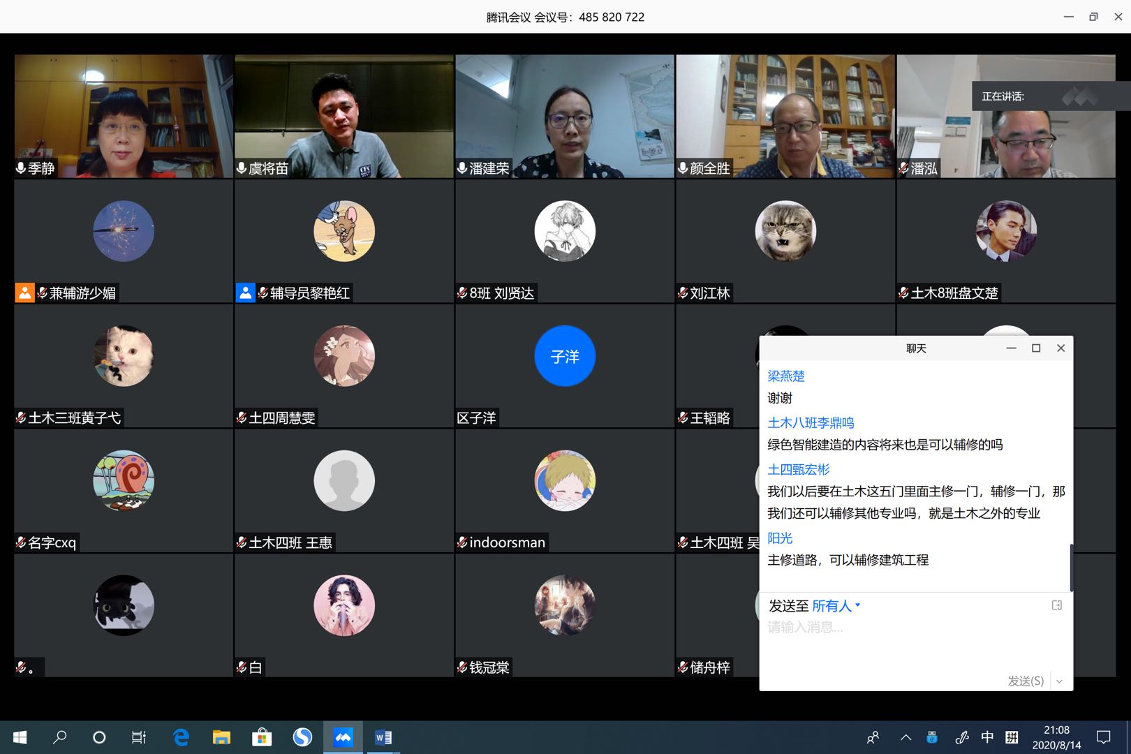 8月14日19:00,土木与交通学院2019本科生土木工程专业分方向答疑会通过腾讯会议平台顺利举办会议由潘建荣老师主持,季静副院长和颜全胜、潘泓、虞将苗等专业老师以及辅导员黎艳红出席共计170多位学生参与答疑会。