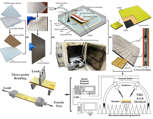 碳纤维/玻璃纤维增强三维格栅点阵微波隐身超结构制备过程和力学隐身性能表征方法