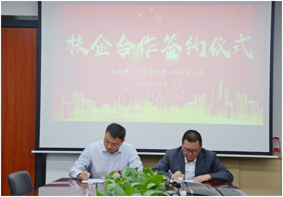 11月11日,华南理工大学土木与交通学院和中建一局华北公司共建校级教学实习基地合作签约仪式在深圳举行。土木与交通学院党委书记郑存辉、副院长陈珺、工程力学系刘逸平、土木工程系胡方鑫、工程管理系副主任黄文炜、研究生办公室陈逸新,以及中建一局华北公司副总经理周宇、总经理助理刘国英、南方分公司总经理李智勇及相关部门负责人等出席了签约仪式。这是今年我院新增的又一家校级实习基地,进一步深化校企合作和加强名企实习计划。