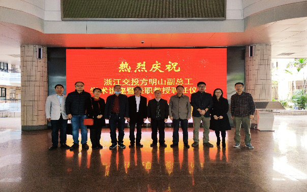 12月4日上午,浙江交投方明山副总工受聘华南理工大学兼职教授仪式暨学术报告会在交通大楼604隆重举行。华南理工大学土木与交通学院党委书记郑存辉,副院长陈珺,党委副书记王磊,土木系桥梁教研室与道路工程系相关老师及数十名师生出席了本次聘任仪式暨学术报告会。聘任仪式由颜全胜教授主持,土木与交通学院党委书记郑存辉代表学校向方明山副总工颁发了华南理工大学“兼职教授”聘任证书。