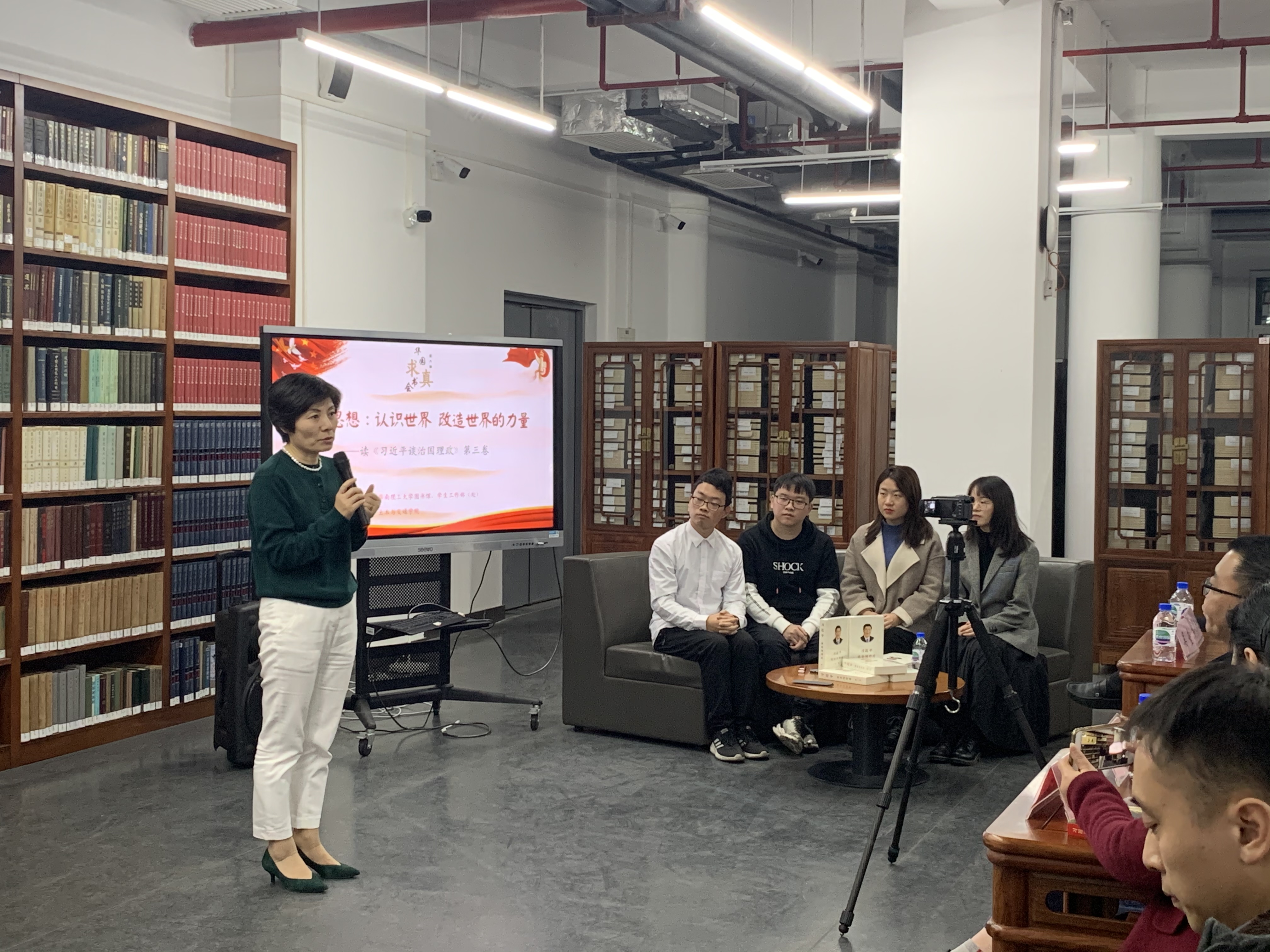 第三卷应该怎么读,怎么学呢?马克思主义学院院长解丽霞教授为大家就此问题做了专题分享。解院长的精彩而深刻的解读,让在场师生豁然开朗、深受启迪。同学们说:“解老师带着我们把一本厚书读薄了。”