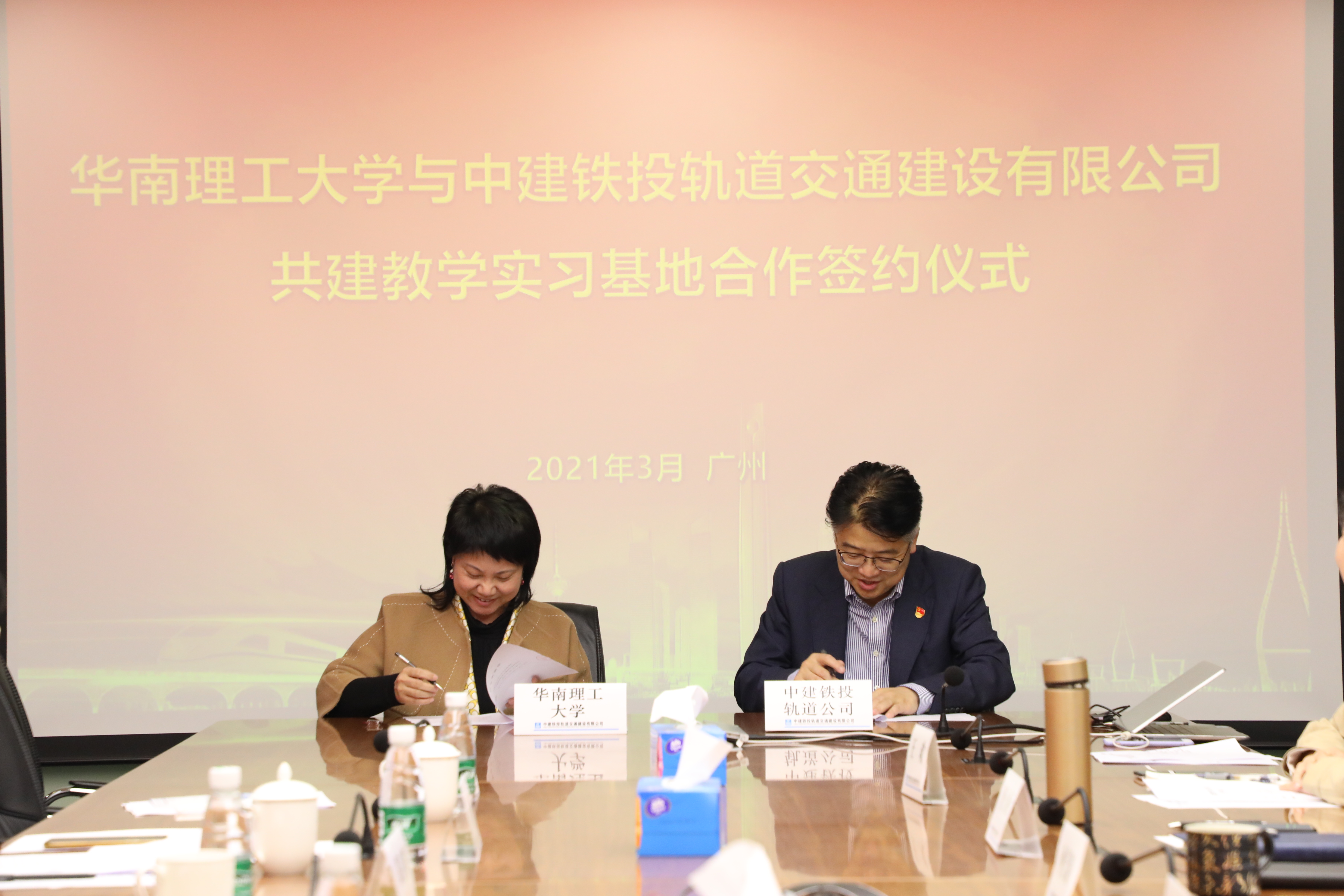 2021年3月9日下午,华南理工大学土木与交通学院与中建铁投轨道交通建设有限公司校企合作签约暨授牌仪式在广州举行。土木与交通学院党委郑存辉书记、季静副院长、陈珺副院长、周小文教授、贾布裕副教授等一行,中建铁投轨道交通建设有限公司党委书记、董事长仲崇涛先生、工会主席胡阳平先生、总工程师赖永标先生等一行共同出席了签约仪式。
