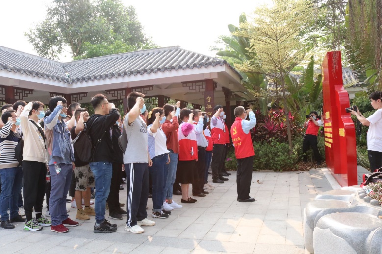 在全国劳模、广州市优秀党员张辉源同志的带领下重温入党誓词