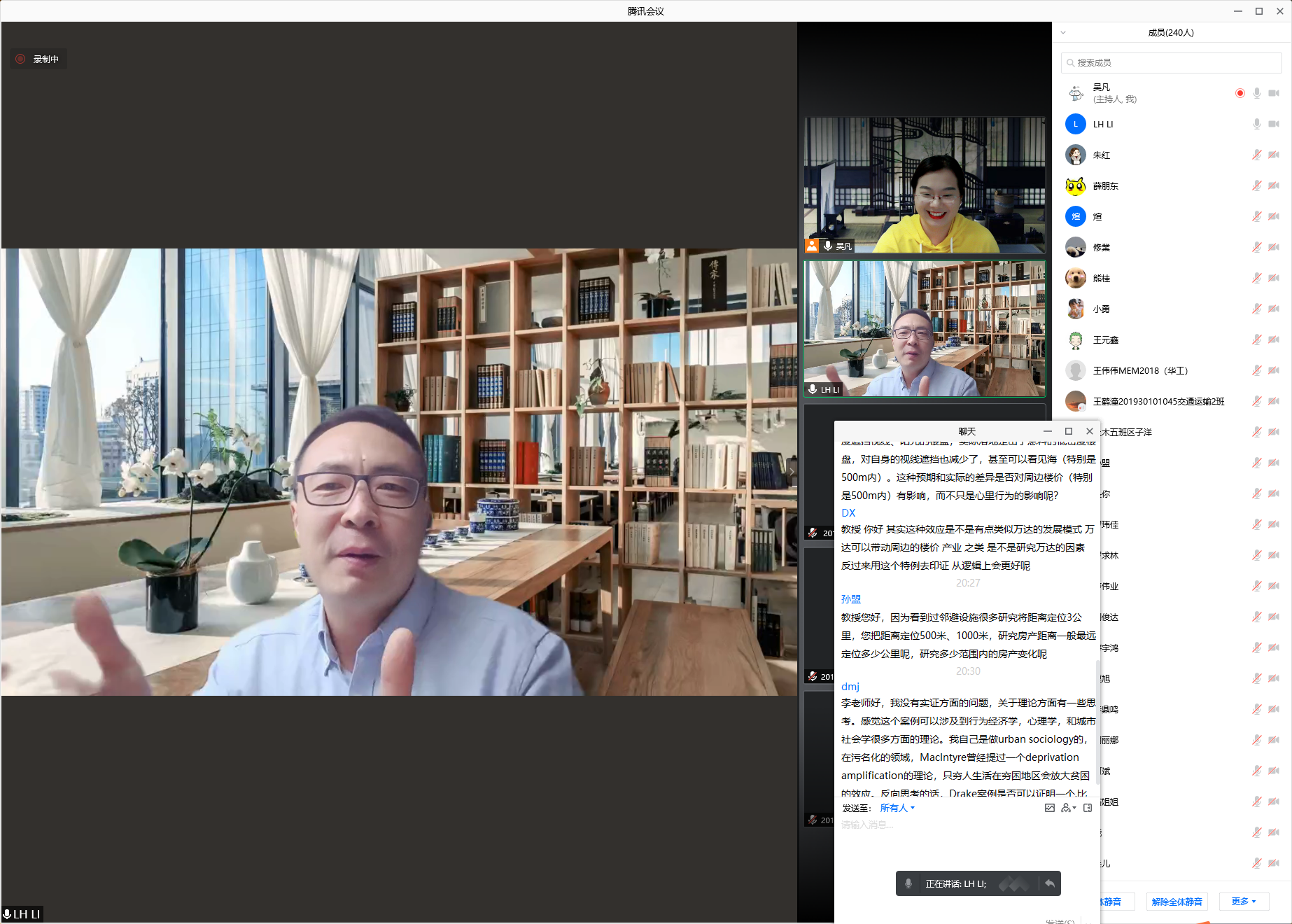 随后,在交流讨论环节,老师和同学们热烈地提出众多精彩问题。李宁教授耐心解答回应,并引申和分享了有关经济学、心理学、行为学在房地产研究中的观点和案例。本次线上讲座在师生们精彩热烈的讨论中接近了尾声。