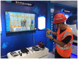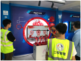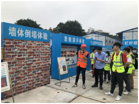 接下来,同学们在安全体验馆内学习了数字灭火、二维码技术交底、VR安全体验、墙倾倒体验、智能健康驿站、高空坠落体验等内容。通过线上知识交底、灭火游戏、动画教学、VR虚拟座舱等多种信息化教学手段,深切感受到施工安全的必要性。