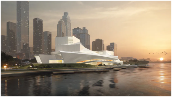 “三馆合一”项目位于广州市荔湾区白鹅潭产业金融服务创新区,与沙面岛和广州西关的历史街区隔江相望。按照白鹅潭核心起步区的规划,将打造以滨水开放营造多层次的户外公共艺术空间。以现代材料和建构技术适应岭南地域气候,以地域性、文化性和时代性的有机融合打造具有丰富文化意象和典雅艺术品位的“南粤新地标、羊城新名片”。