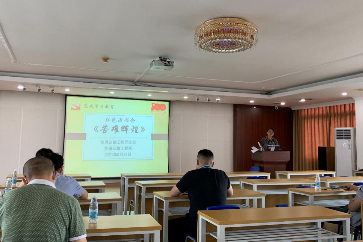 党支部还开展了“红色读书会”系列活动之《苦难辉煌》读书分享。由马莹莹老师系统介绍了这本书的主要内容,并与参会老师分享了读书感想。“红色读书会”活动为交通运输工程党支部开展的党史学习教育特色活动,旨在促进支部党员开展党史学习,深入了解中国共产党人从苦难走向辉煌的历程,深刻理解中国革命胜利的必然性及力量之源。