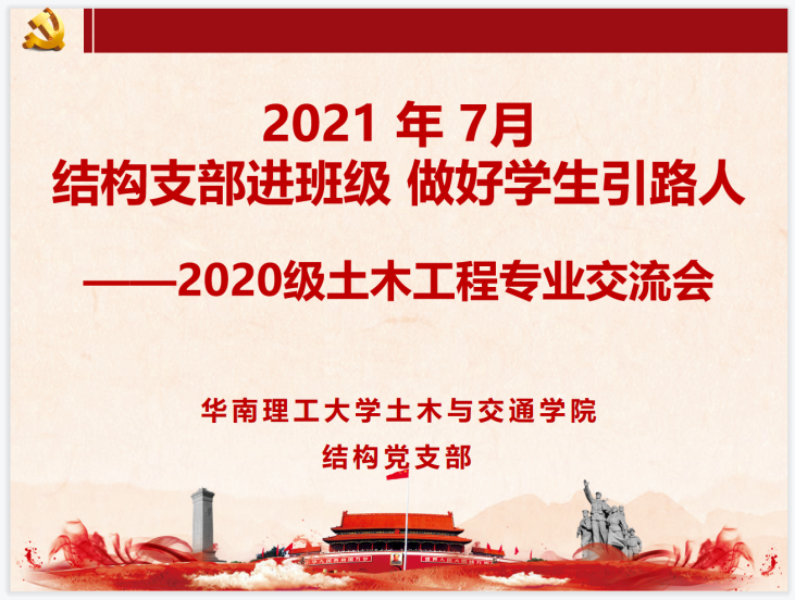 为进一步加强党员教师和学生之间联系,不忘教书初心,牢记育人使命,土木与交通学院结构党支部自2020年开展“教师支部进班级,做好学生引路人”支部特色主题活动。