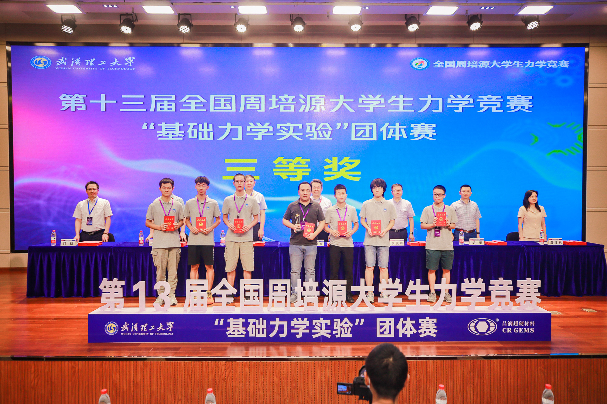 7月25日至27日,由土木与交通学院陈雅辉、谢景昌、向前及机械与汽车工程学院陈博文、袁攀五名同学,以及土木与交通学院指导教师张闰、周立成老师组成的华南理工大学代表队参加了在武汉理工大学举办的第十三届全国周培源大学生力学竞赛“基础力学实验”团体赛并获得三等奖。指导教师同时获得本次力学竞赛优秀指导教师奖。