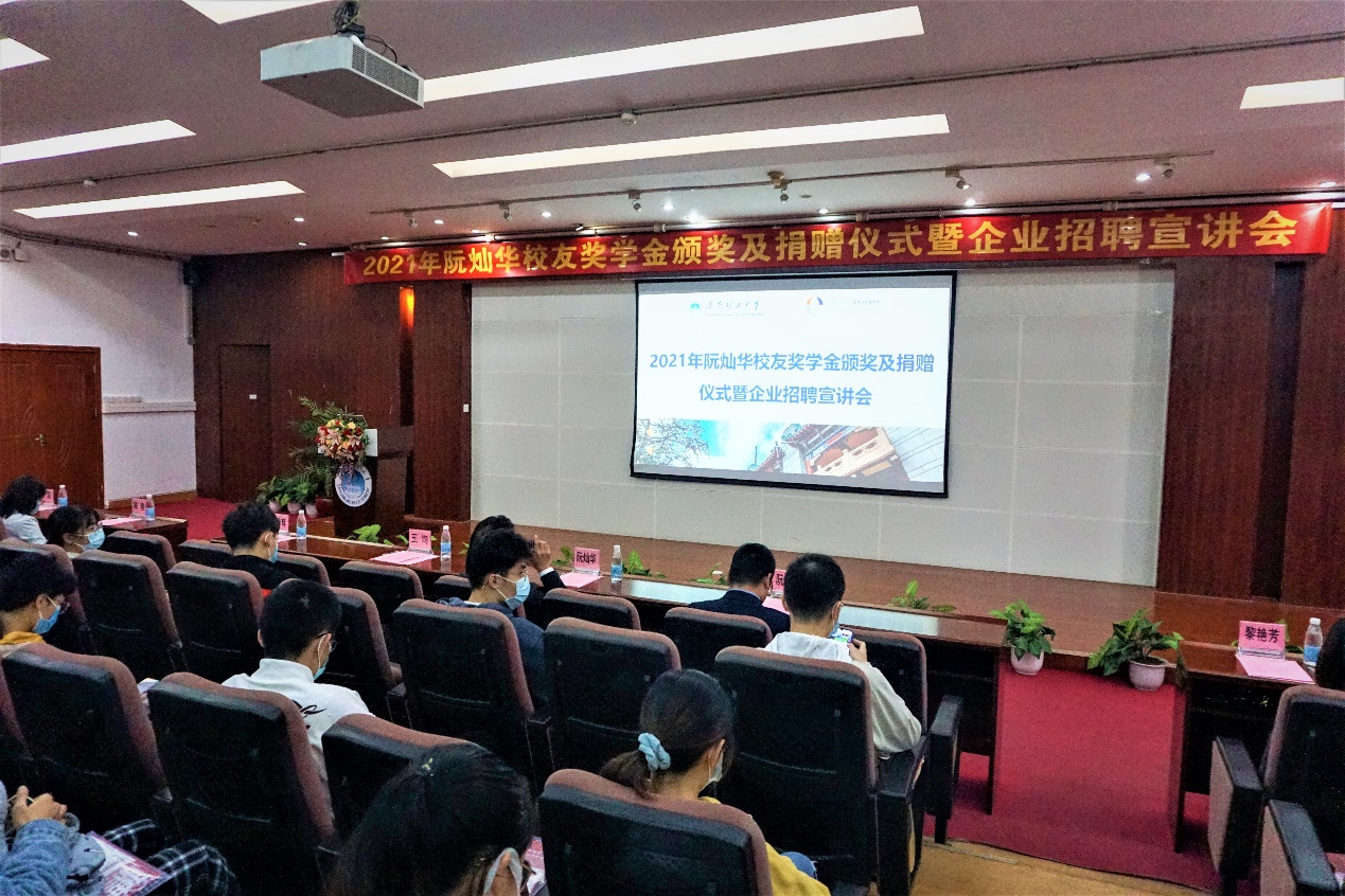 10月25日下午,2021年阮灿华校友奖学金颁奖及捐赠仪式在交通大楼学术报告厅举行。学校党委常委、研究生院常务副院长王均出席会议,华南理工大学工程力学系90届校友、清远市恒福地产开发有限公司董事长阮灿华,清远市恒福房地产副总经理阮海强等6名企业代表,以及学校公共关系处、土木与交通学院负责人及师生代表参加了本次会议。