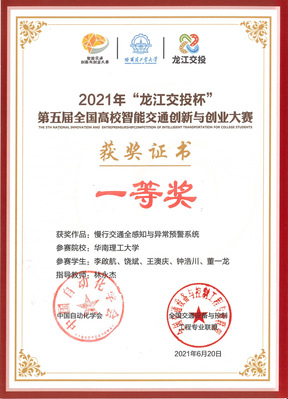2021年6月20日,由中国自动化学会与全国交通设备与控制工程专业联盟主办,哈尔滨工业大学承办的“龙江交投杯”第五届全国高校智能交通创新与创业大赛在黑龙江省哈尔滨市落下帷幕。由我院交通运输工程系林永杰老师指导,我院李啟航、饶斌、王澳庆、钟浩川,计算机科学与工程学院董一龙5位华工学子完成的作品“慢行交通全感知与异常预警系统”在总决赛中脱颖而出,荣获总决赛一等奖(决赛晋级作品53个,一等奖5个)。本届大赛决赛期间正值广州疫情防控关键期,在组委会特别批准下,李啟航等人采取远程线上答辩的形式,虽然受制于网络答辩的诸多不便,但选手们仍积极准备,向评审专家们展示了华工学子强烈的求知欲望和极强的技术创新能力,其成绩毫不逊色于现场答辩的其他参赛队伍。