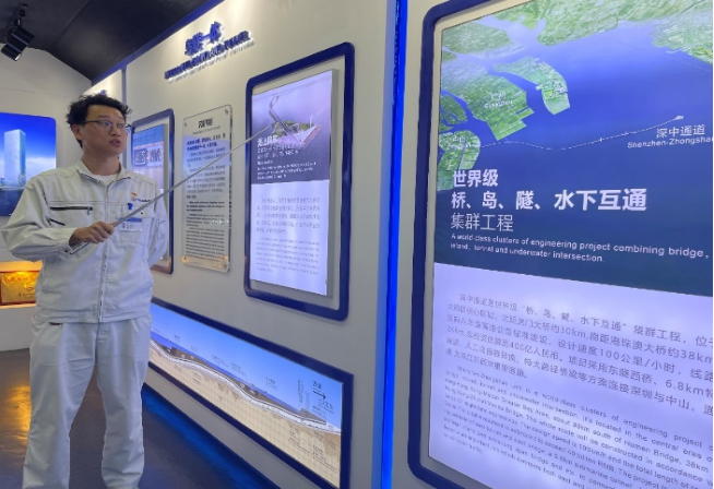 深中通道是一个桥、岛、隧、水下互通集群的世界级工程,具有多个分部工程和分项工程,首次大规模使用钢壳混凝土结构。深中通道地处珠江口核心区域,位于虎门大桥下游约30km,港珠澳大桥上游约38km,连接深圳至中山,项目路线全长23.914km,桥梁长约17km。深中通道设计为双向 8车道,时速100km,隧道段全长6845m,其中沉管段长5035m,由 32 节管节和 1 个最终接头组成。