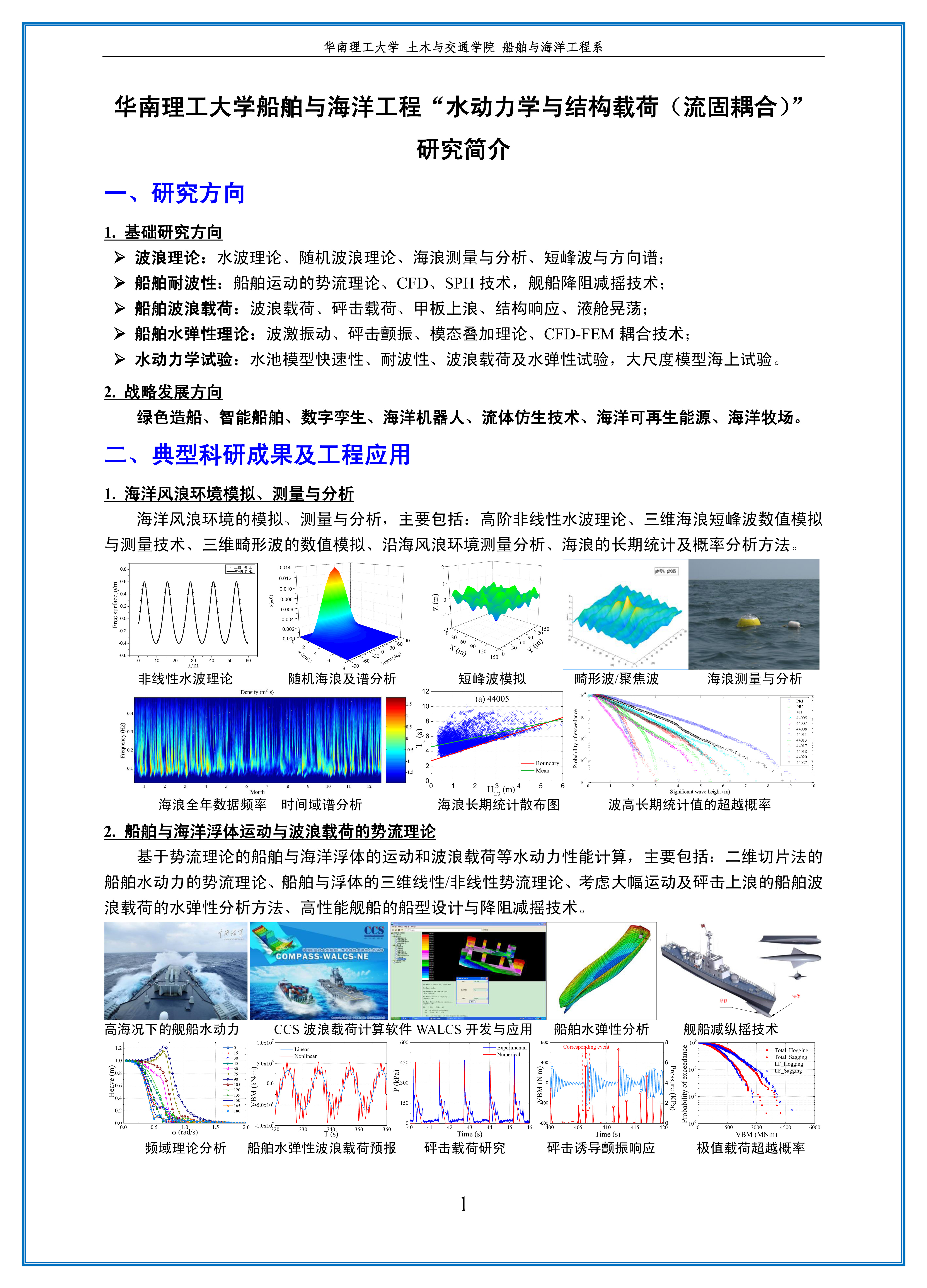 (1)波浪理论:水波理论、随机波浪理论、海浪测量与分析、短峰波与方向谱;