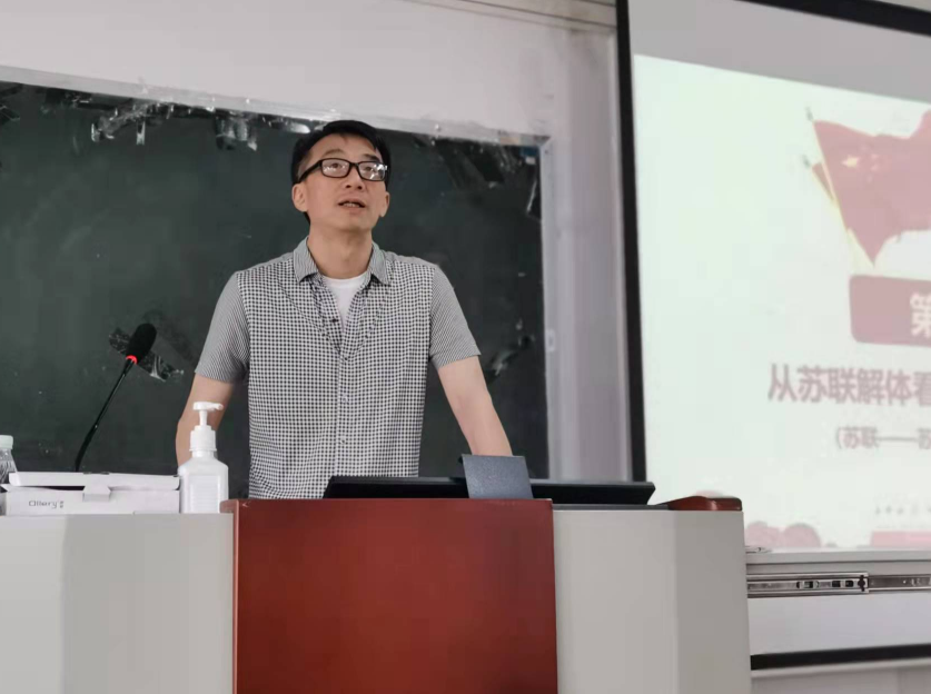 吴波院长从什么是历史虚无主义、从苏联解体看历史虚无主义的危害、历史虚无主义在我国现阶段主要表现形式、如何旗帜鲜明地反对历史虚无主义四个方面展开讲授。吴院长首先通过向同学们提问什么是历史虚无主义引入授课主题,之后又引经据典,分析苏联解体过程中历史虚无主义起到的作用,深入剖析西方势力从中谋取的利益,针对苏联的动机,提醒同学们需要注意西方势力对我们意识形态的攻击。接下来,吴院长又举例说明历史虚无主义在我国主要以:丑化英雄、诋毁国家领袖及家属、否定抗日战争、否定中华文明等形式出现,号召同学们应旗帜鲜明地反对历史虚无主义,坚持历史唯物主义,坚定“四个自信”,弘扬中华优秀传统文化,发展社会主义先进文化。