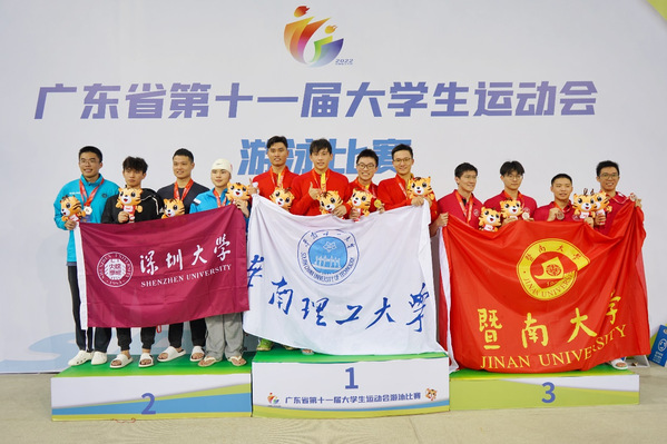 在5月28日结束的第十一届广东省大学生运动会游泳比赛中,土木与交通学院2018级土木工程全英班陈梓涵同学代表学校出战,在男子甲组4X50米自由泳接力、50米自由泳、50米蝶泳项目中勇夺三枚金牌!华南理工大学游泳代表队夺得4金2银共计6枚奖牌,打破省大运会记录2项,获得游泳项目团体总分第一名。