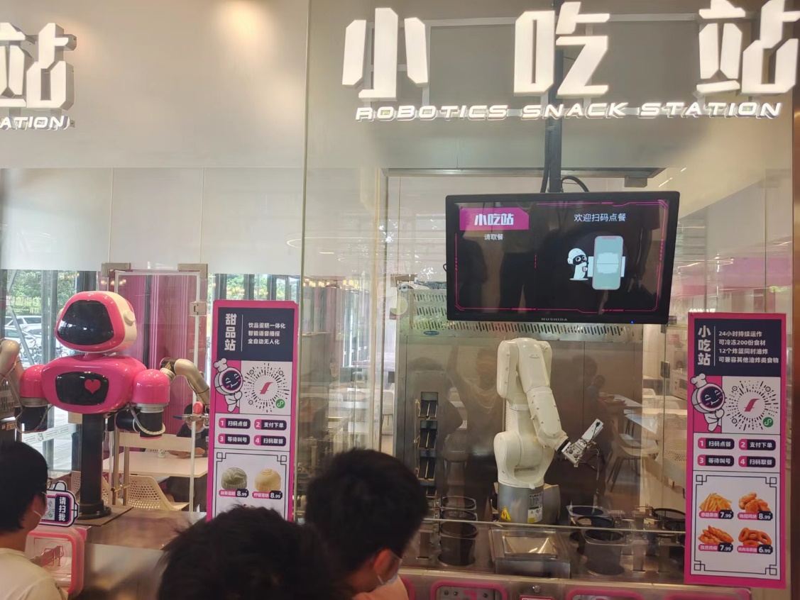 随后,同学们深入到博智林公司总部大楼,在博智林人力资源部陈婷和规划与市场部李龙君带领下,前往11楼顶层平台参观了以低碳环保多元为主题的多功能休息区,也远眺了机器人建造辅助下的样板工程项目。同学们领略了建筑机器人的风采,看到了建筑行业向数字化和智能化的转变,同时也感受到这样新兴科技企业所具有的工匠精神和家国情怀。2020级全英班谢文斌说,“通过今天的参观,我感受到科技是强国之本,这些机器人高效地完成建设任务也是追求工匠精神的新境界”。2020级全英班谢光毅补充道,“建造机器人的成功是背后博智林上千名技术人员攻坚克难的结果,是十年如一日不断地试错、改进、与现场的配合才能达到的,对于我们在校生培养学习能力也有很大的启发。”2021级全英班易思雨说,“博智林公司粉红色的机器人为建设工地增添了色彩,我认为,未来的建造方式不仅仅只是机械的堆砌,也将充满浓郁的人文气息。而对人的关注,也是社会主义核心价值观的体现”。最后,师生一同还参观了博智林总部旁由该公司孵化科技感十足的机器人餐厅,看到了菜品“从天而降”,真切感受到了科技走向大众,改变生活水平的实例。