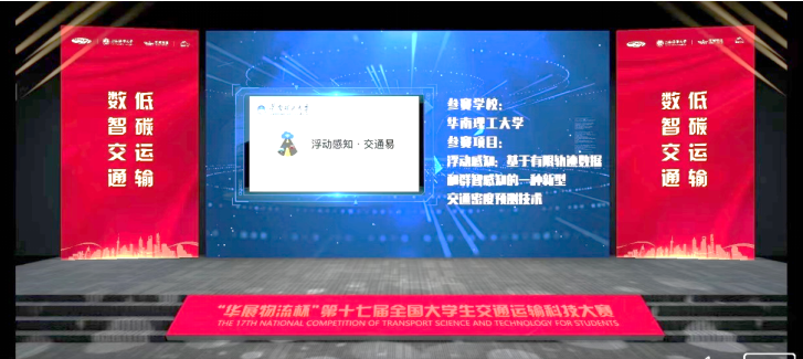 经过激烈角逐,华南理工大学土木与交通学院林培群教授、计算机科学与工程学院陈伟能教授指导的作品《浮动感知:基于有限轨迹数据和群智感知的一种新型交通密度预测技术》荣获一等奖(前3%),土木与交通学院巫威眺副教授指导的作品《“花椒智停”自动化无线立体停车库的设计与调度优化研究》荣获二等奖,土木与交通学院马莹莹副教授指导的作品《人机混驾环境下基于深度强化学习的车群协调智能控制系统》荣获三等奖,土木与交通学院漆巍巍副教授指导的作品《基于YOLO和DeepSort算法融合的实时车辆冲突判别方法及其应用》获得优胜奖。