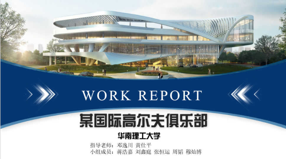 我校代表队的作品“高尔夫俱乐部项目” 由五名来自土木与交通学院本科生和研究生组成(队长:蒋浩嘉;队员:刘鑫庭、张运恒、周韬、穆灿博),由工程管理系邓逸川老师和土木工程系黄仕平老师联合指导,胡楠老师任领队,负责赛事联络、协调和答辩工作。