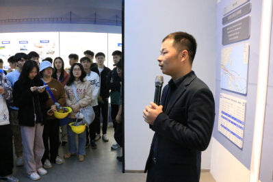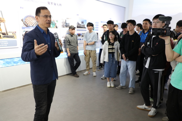 经过两小时多的车程,师生们抵达黄茅海跨海通道项目管理中心,管理中心潘放主任、技术部沈大为经理及相关工作人员对华工学子的到来表示热烈的欢迎。潘放主任是华南理工大学桥梁与隧道工程专业的博士生,长期从事大型工程的建设、科研及管理工作,先后承担了开阳高速公路工程、包茂高速工程、深中通道工程和黄茅海跨海通道工程等国家重大工程项目的建设和管理。在潘放主任热情洋溢的介绍下,同学们慢慢地打开了黄茅海跨海通道工程的巨幅画卷,对学长担负了多项重大路桥工程建设管理感到由衷地佩服,同学们更坚定了对路桥专业的热爱,树立了以学长为榜样、为交通强国建设贡献力量的坚定信心。