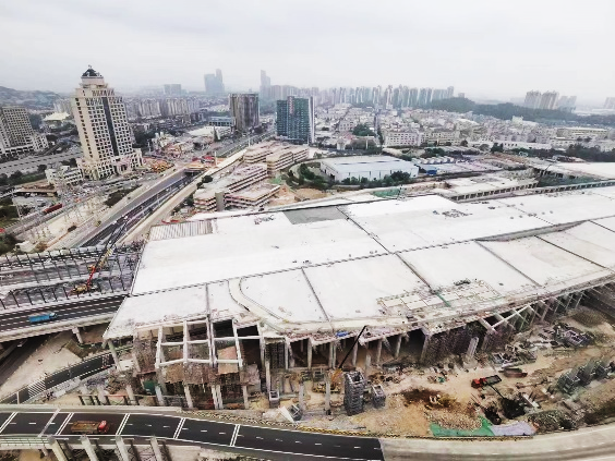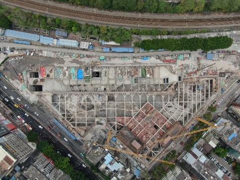 | 建工班在中山八路项目合影 | 中山八路地铁综合项目航拍俯视图 |